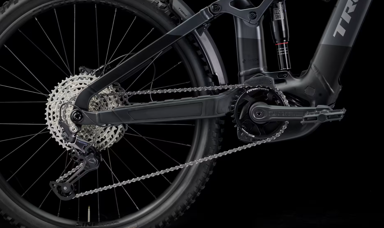The Rail+ 5 is an alloy enduro e-bike that delivers huge value for big adventures. Its rugged Alpha Platinum Aluminium frame partners with a RockShox Deluxe Select+ RT shock and Psylo Gold RC fork (160 mm rear/front) to charge through the roughest terrain on the mountain. A Shimano Deore 12-speed drivetrain and 4-piston MT4100 brakes deliver clean shifting and brake modulation that doesn't break the bank. It's topped with a TranzX dropper post and tubeless-ready Bontrager Line TLR 30 wheels for charging into anything.